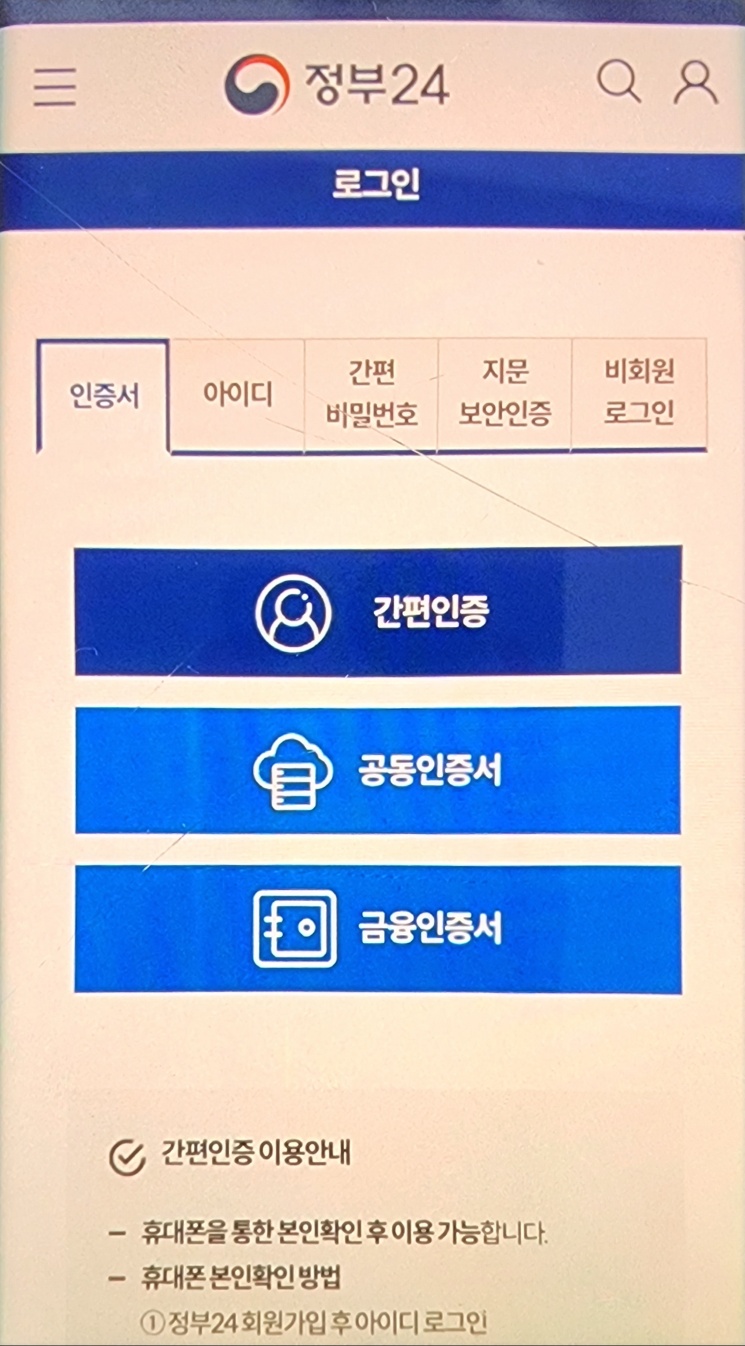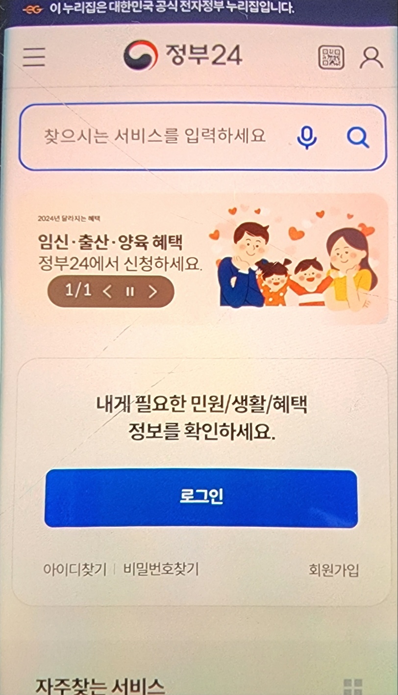 1. 정부 24 앱 다운로드 -> 로그인